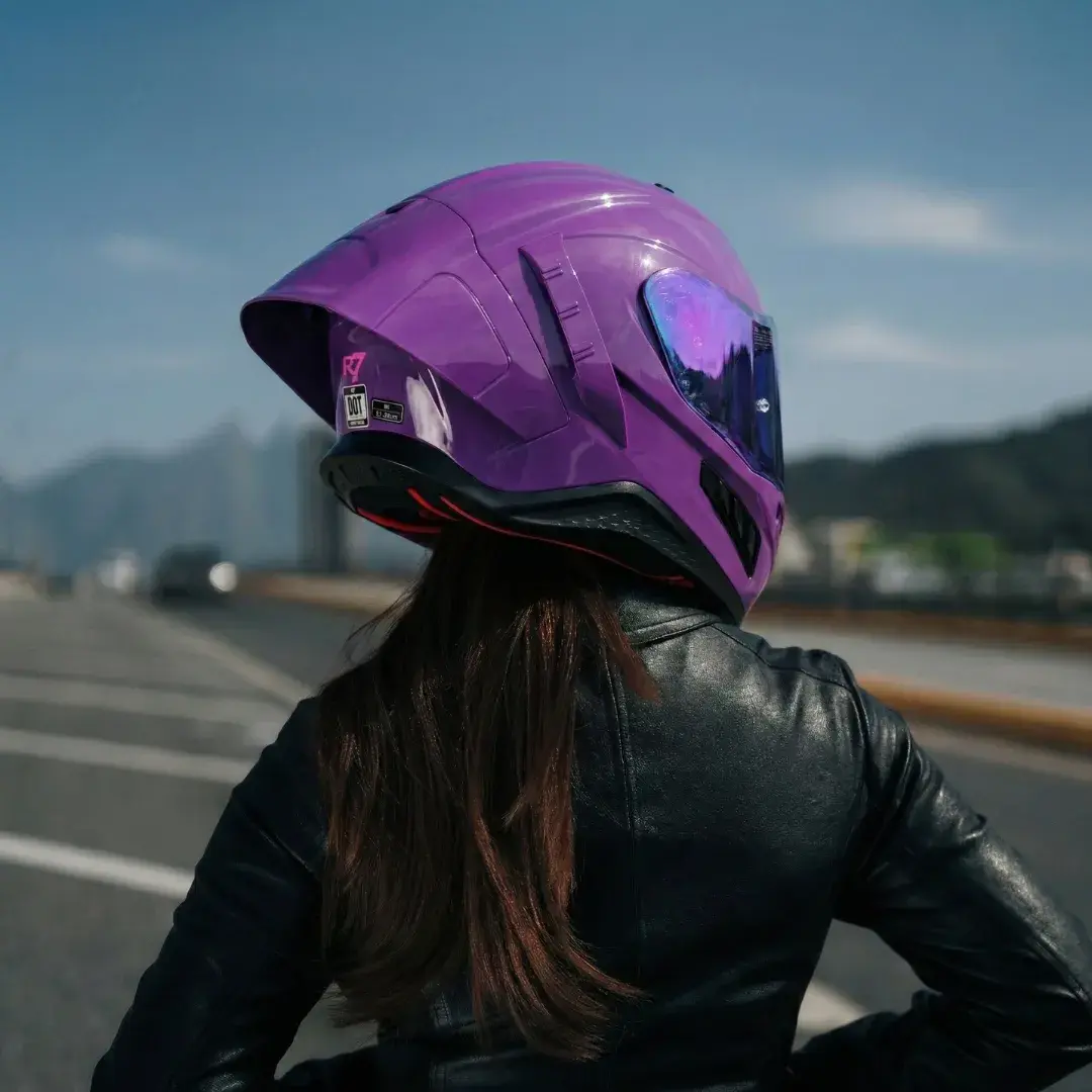 Este casco integral (cerrado) está diseñado específicamente para la mujer motociclista que no quiere elegir entre estética y protección. Su vibrante color lila y acabado premium lo hacen destacar, mientras que su estructura aerodinámica garantiza un viaje suave y seguro.