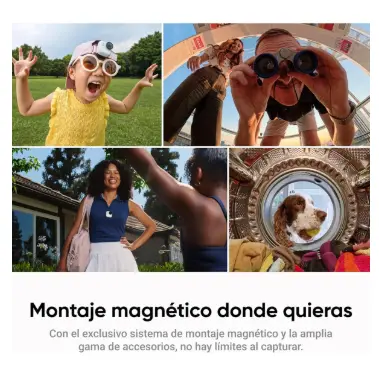 La cámara GO Ultra te permite capturar tus aventuras en 4K con total libertad, siendo ligera y portátil con solo 53 g y del tamaño de un reloj, ideal para deportes y viajes. Su montaje magnético permite grabar en primera persona con manos libres, sujetándola a una gorra o usando el colgante magnético para liberar tus manos y obtener perspectivas únicas. Ofrece video 4K60fps con HDR activo, sensor de 1/1.28" y chip AI de 5 nm para un rendimiento superior de día y de noche, con el modo PureVideo para capturar imágenes de alta calidad incluso en condiciones de poca luz. Dispone de estabilización FlowState de 3 niveles con bloqueo de horizonte de 360°, hasta 200 minutos de autonomía con carga rápida (0 a 80 % en 12 min), y un montaje versátil que permite ángulos creativos con diversos accesorios. Es resistente al agua hasta 10 m de forma independiente (IPX8) y hasta 60 m con el estuche de buceo (IPX4), mientras que la edición automática mediante IA encuentra tus mejores momentos y genera videos listos para compartir en redes sociales. El paquete incluye 1 cámara independiente, 1 Action Pod, 1 mini trípode 2 en 1 2.0, 1 montura de liberación rápida y 1 soporte pivotante; la microSD se vende por separado.