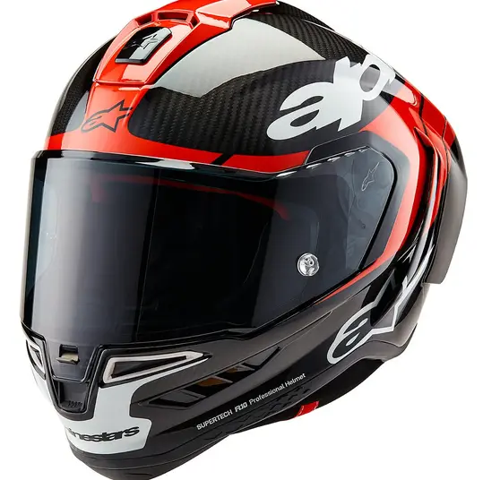 Casco Alpinestars Supertech R10 Team Negro Carbono / Rojo / Blanco.