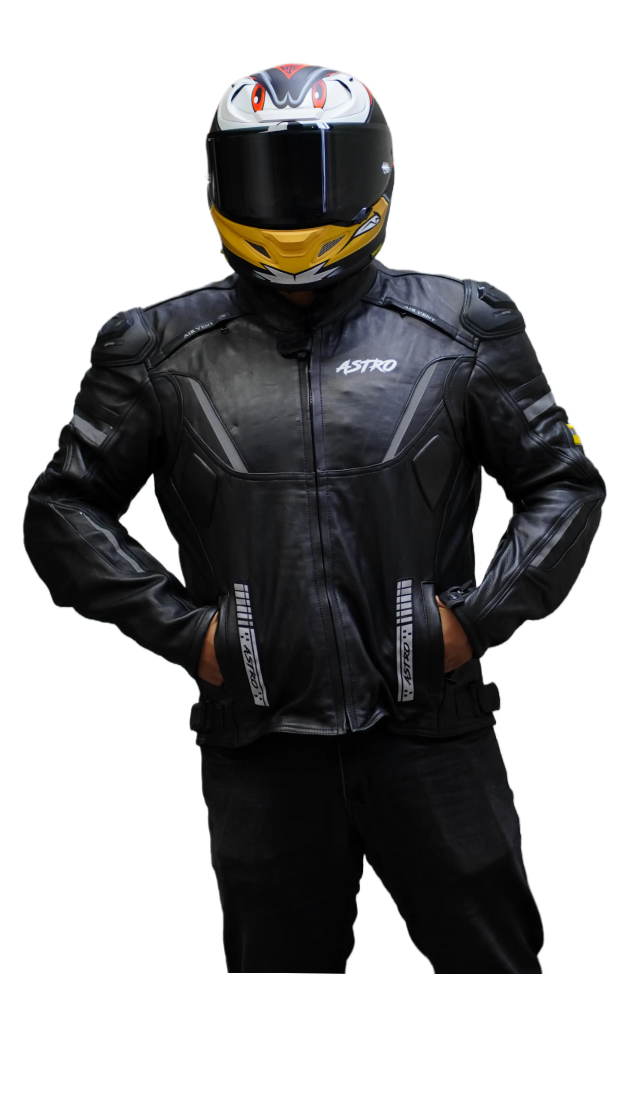La chamarra de piel para motociclista Astro combina resistencia, comodidad y un diseño audaz.