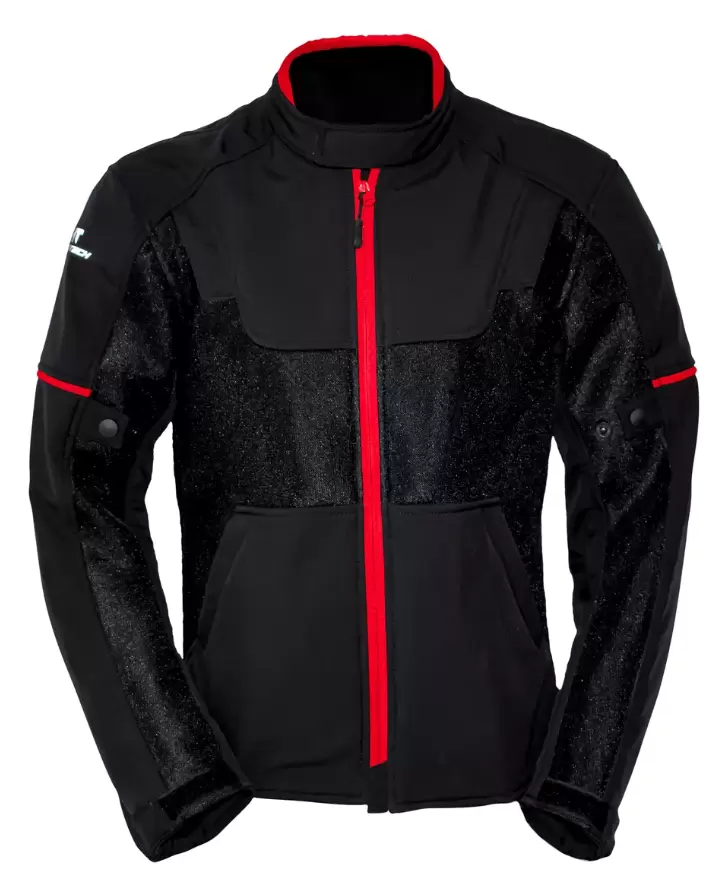 CHAMARRA 70% MESH, 30% POLIESTER, 2 TEMPORADAS CALOR Y LLUVIA, CUENTA CON LINER IMPERMEABLE DESMONTABLE, PROTECCIONES CERTIFICADAS EN CODOS Y HOMBROS, ESPALDERA BASICA, AJUSTES DE VELCRO EN CINTURA, MUÑECAS Y CUELLO, AJUSTES DE BOTON A LA ALTURA DEL BRAZO Y ANTEBRAZO, DETALLES REFLEJANTES LA PARTE FRONTAL, ESPALDA Y MANGAS.