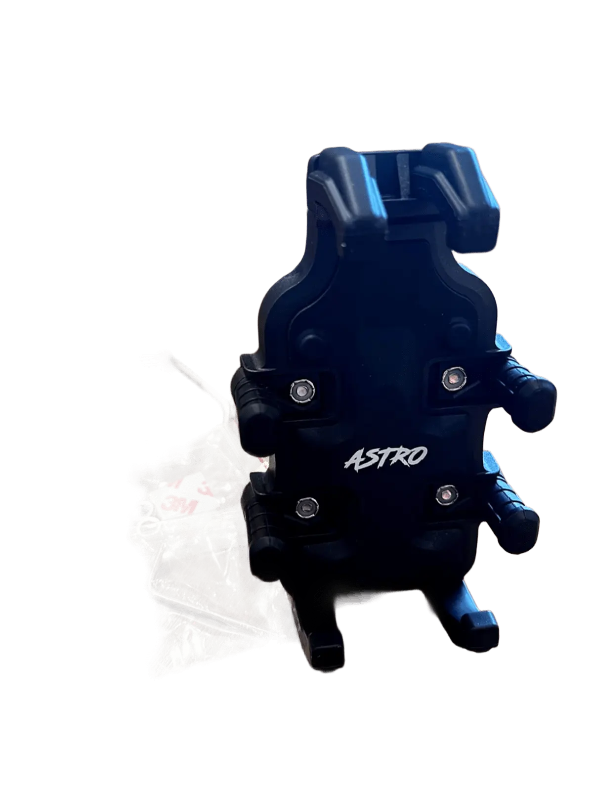 Fabricada con materiales duraderos y de alta calidad, el soporte ASTRO garantiza un rendimiento óptimo incluso en condiciones exigentes. Su diseño universal permite una instalación rápida, protegiendo la superficie del casco y asegurando tomas estables durante el movimiento.